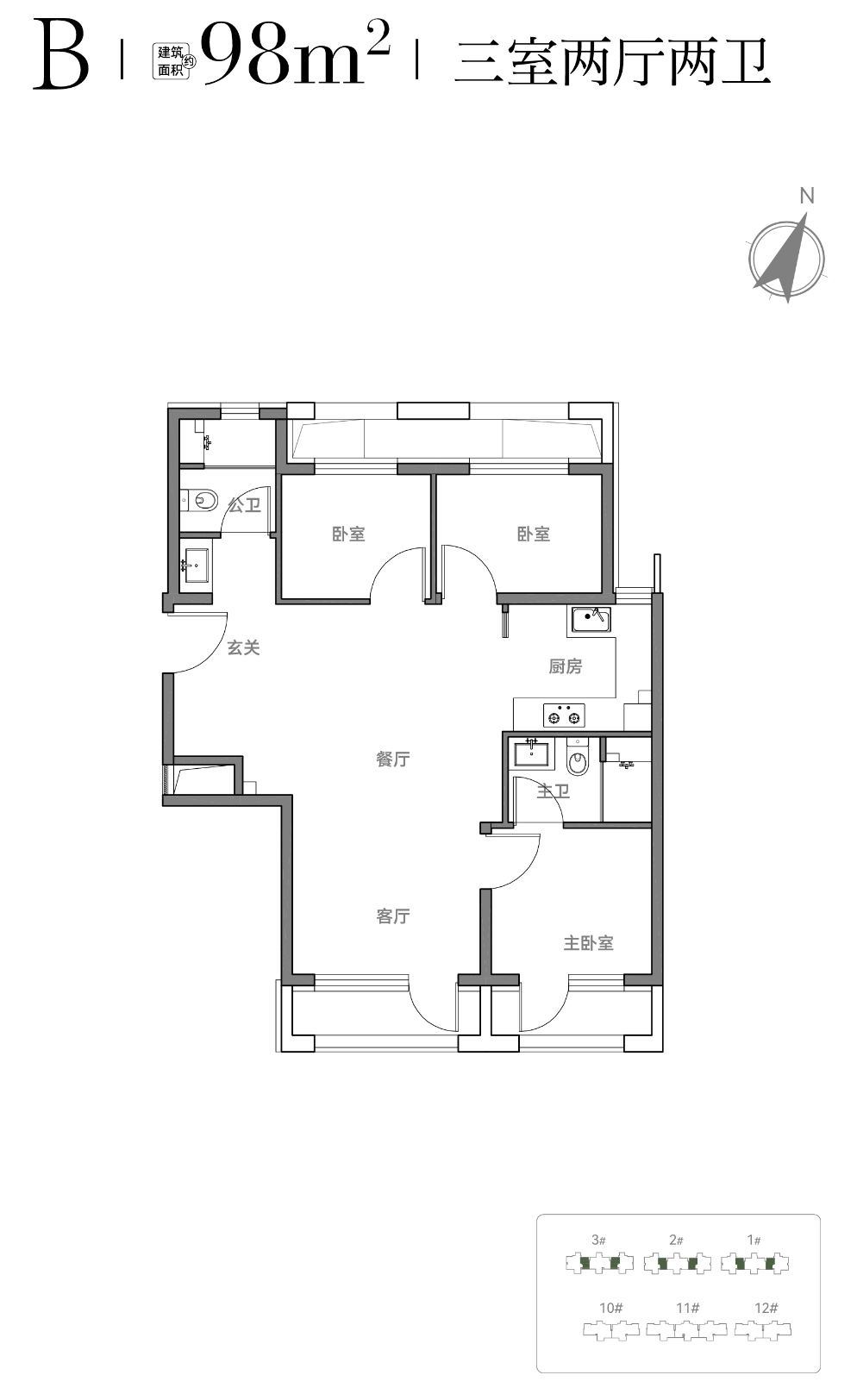 主力户型72/98/99㎡,拟售均价约8.53万元/㎡。