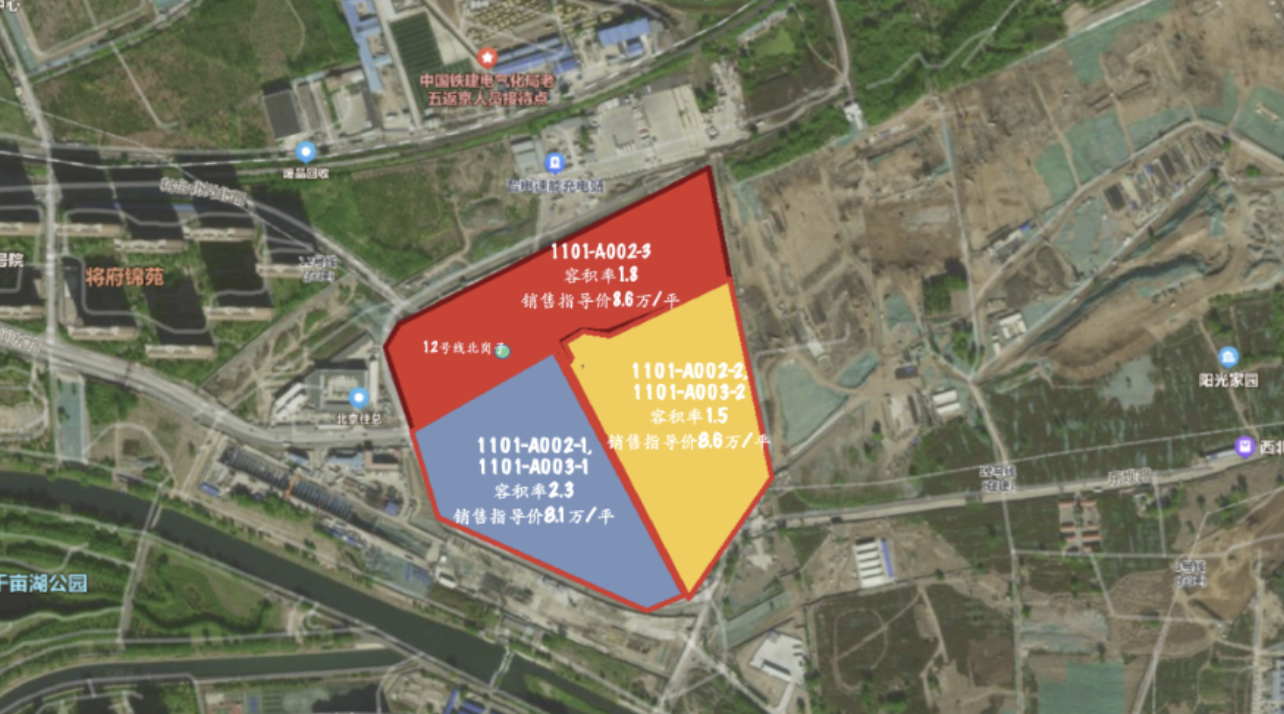 ②1101-A002-1、1101-A003-1地块,成交价约56.1亿元,占地5.72公顷,规划建筑面积约13.2万㎡,销售指导价定为8.1万元/㎡。